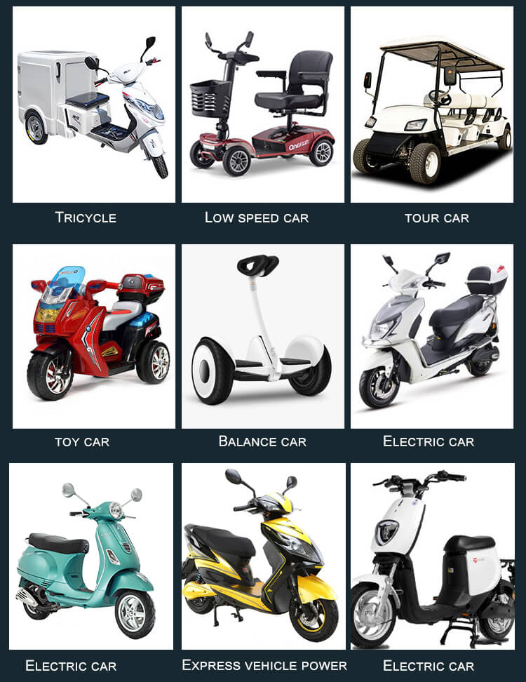 ♦ E-car, Golf troller / car, E-bike, Scooter, RV, AGV, Marine, Xe du lịch, Caravan, Ghế lăn, Xe quét rác điện tử, Nước lau sàn,