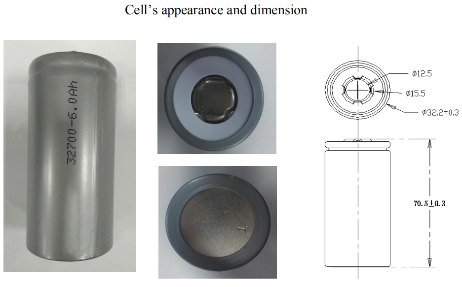 Kich thươc tê bao | Đường kính: 32,2 ± 0,3mm, Tối đa 32,5mm | Chiều cao: 70,5 ± 0,3mm, Tối đa 70,8mm |